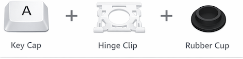Each Keyboard Key Kit Includes: Key Cap | Hinge Clip | Silicone Cup